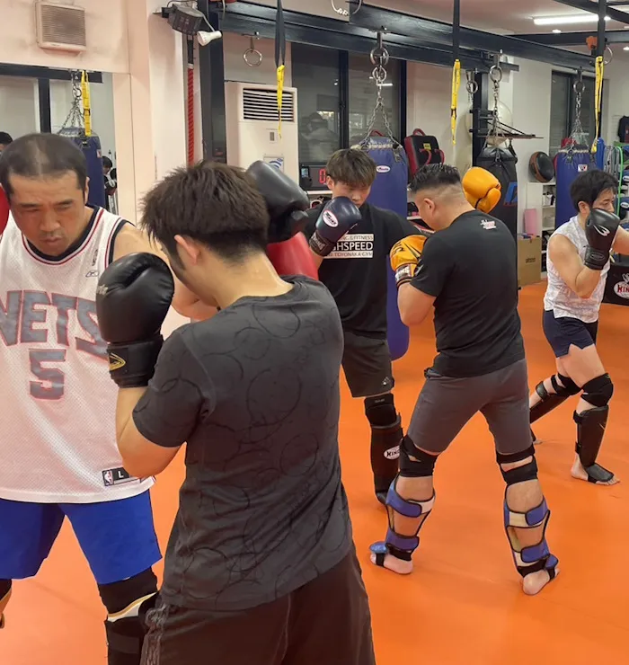 HIGHSPEED 千里豊中 ジムでは、グループレッスンを取り入れ、お客様同士でコミュニケーションをとって楽しみながら本来のキックボクシングの技術を学ぶことができます。